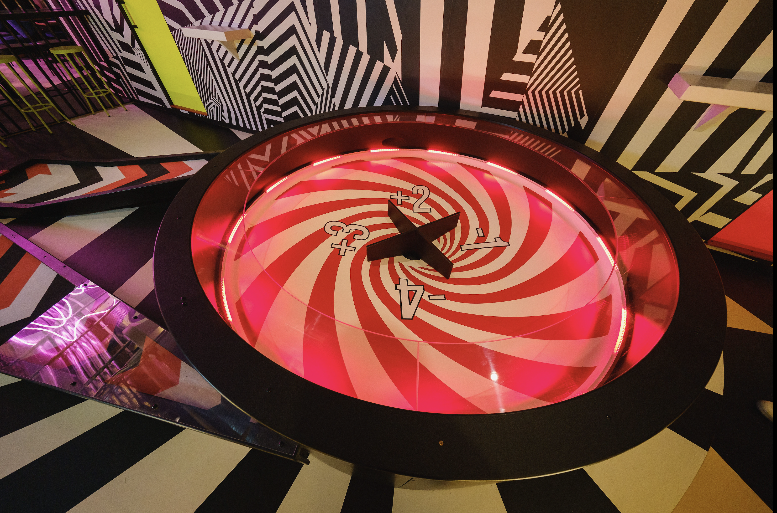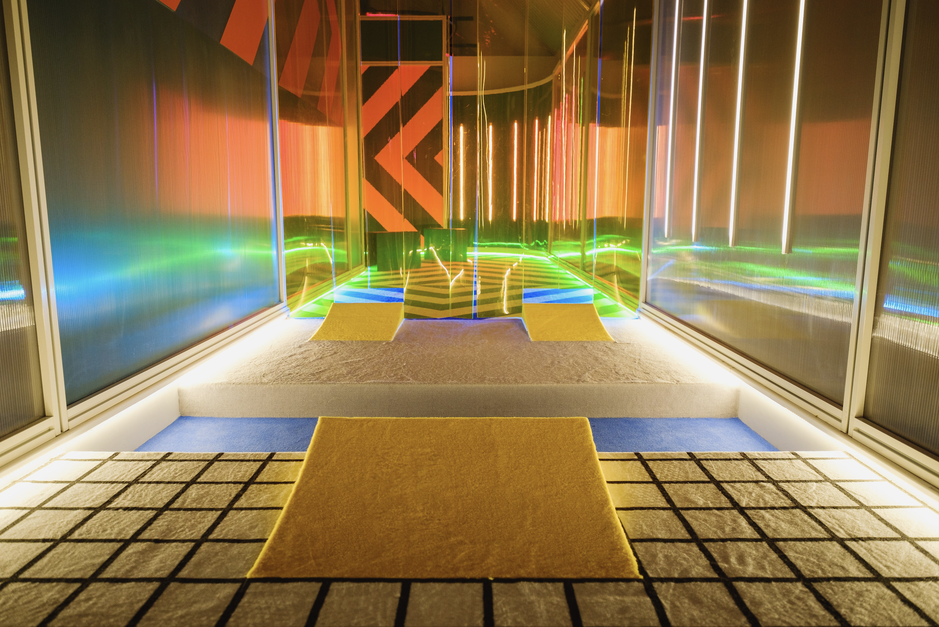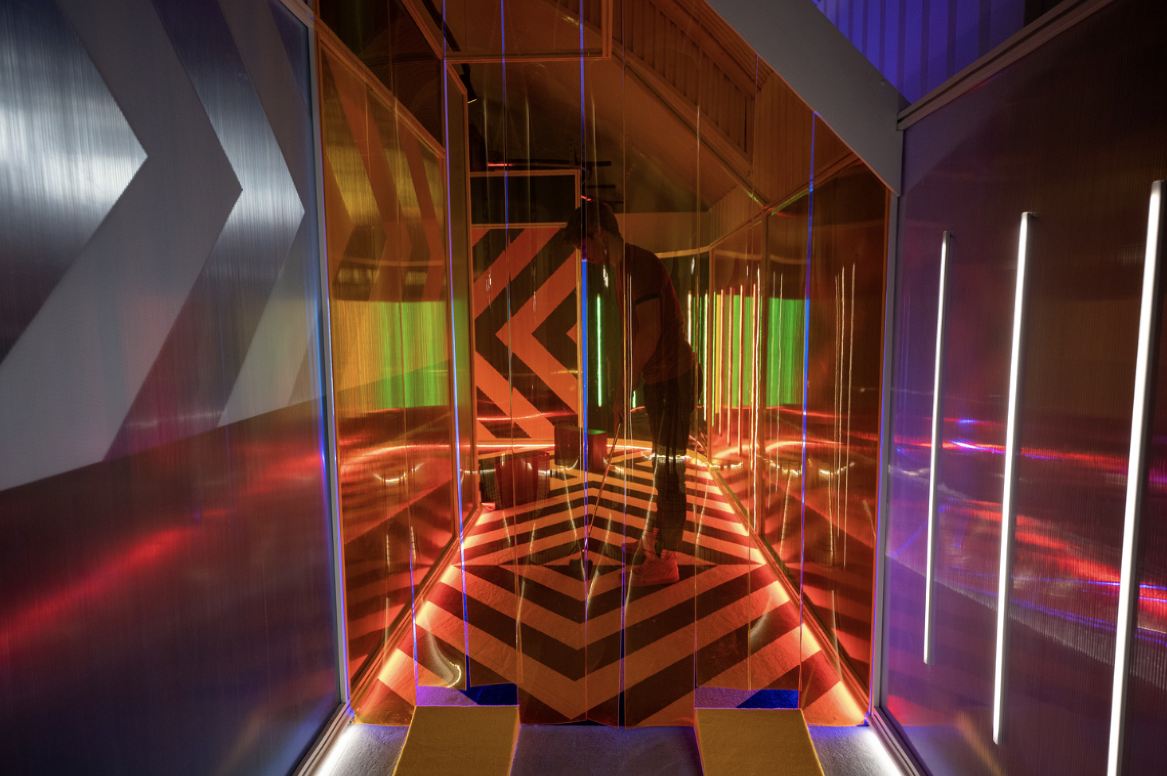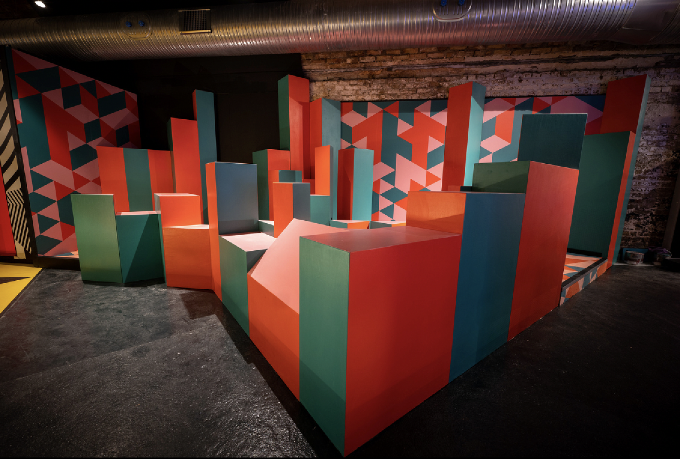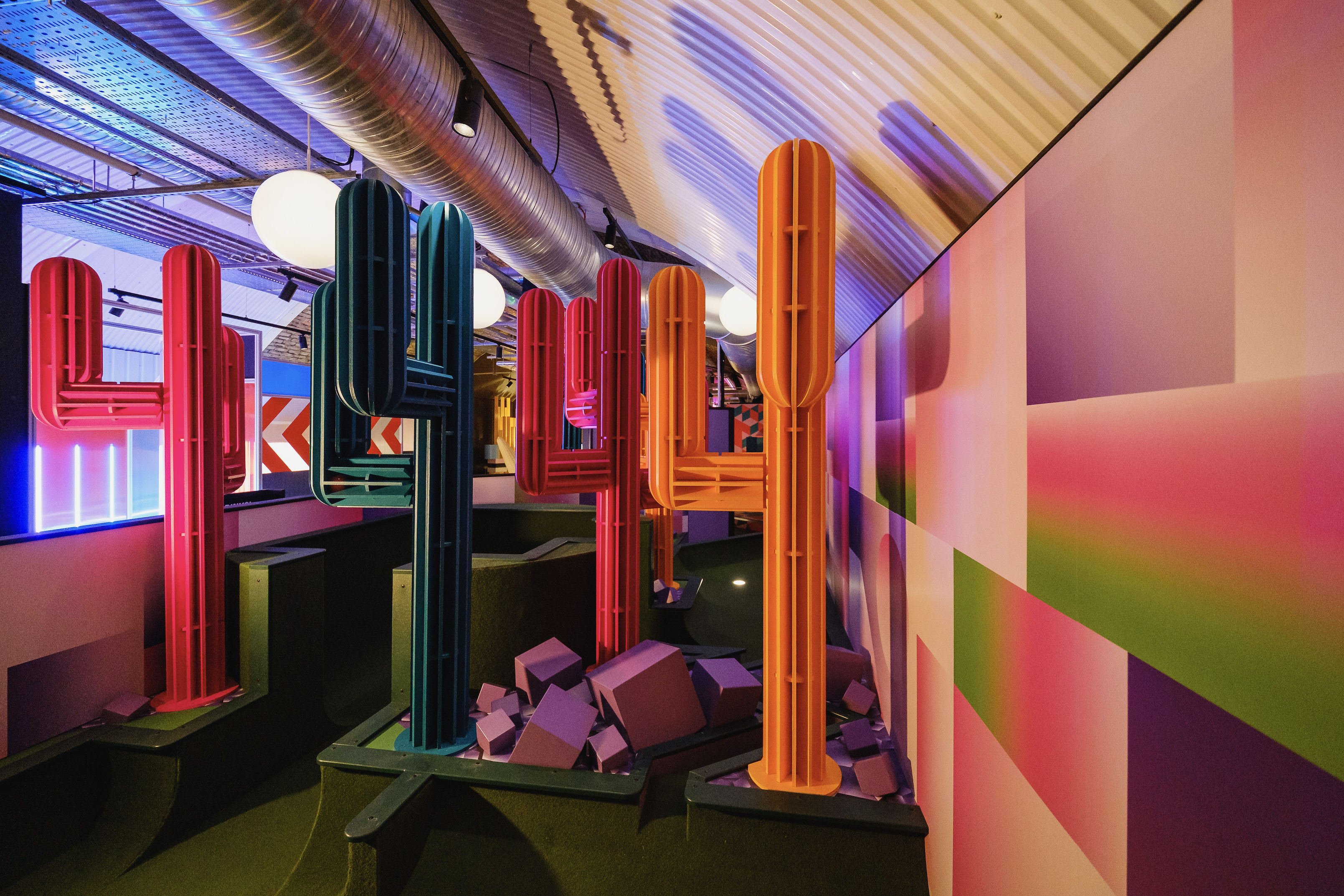 Birdies Crazy Golf, situated inside of an empty London train tunnel is an immersive 9 hole crazy golf course and cocktail bar. Collaborating with award winning interior design studio Shed to design and build a surreal and abstract environment. Inspired by 80’s videos games, patterns and plenty of colors allowed for 9 individually themed holes. The goal was to create a kaleidoscope of experiences to transport the guests into a different world. Holes were designed to be fun, competitive and nothing alike.
